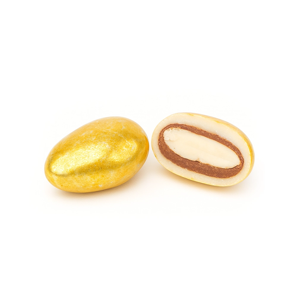 Altın Badem Draje, klasik çikolata lezzetini lüks bir dokunuşla yeniden tanımlar. Altın rengin zarafetiyle birleşen badem ve çikolatanın büyüleyici uyumu, özel davetlerin, kutlamaların ve hediye anlarının yıldızı olur. Her bir tanesi, sadeliğin içindeki ihtişamı temsil eder.